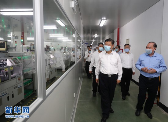 2020年10月12日至13日,中共中央总书记、国家主席、中央军委主席习近平在广东考察。这是12日下午,习近平在潮州市潮州三环(集团)股份有限公司生产车间考察。 新华社记者 王晔 摄