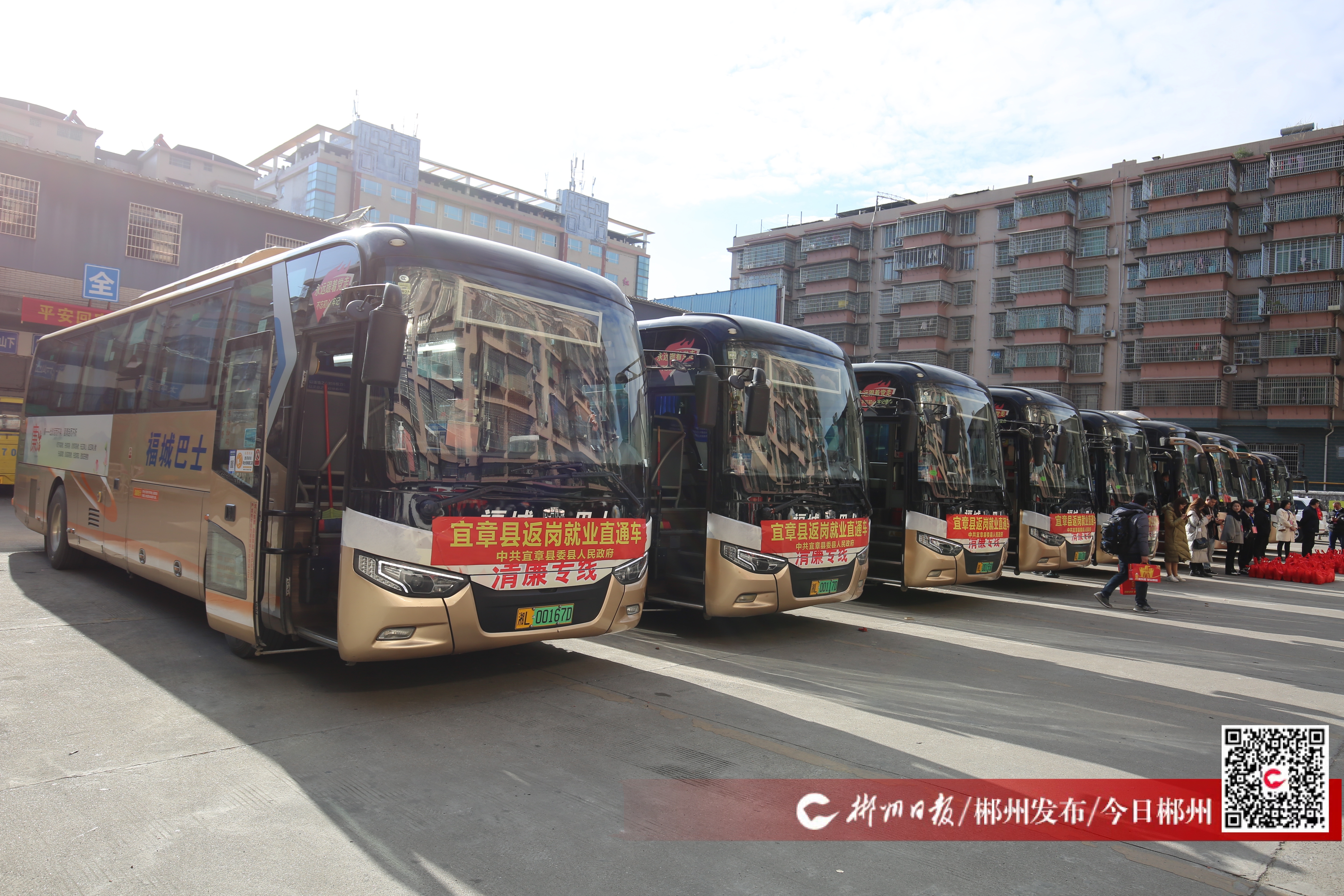 宜章县毗邻广东省,在粤就业人员较多。为解决春节期间外出务工人员购票难问题,确保他们顺利返岗就业,该县对赴广州、深圳、东莞和县内园区务工人员开通返岗就业直通车点对点免费接送,还为务工人员送上装有保温杯、食品、饮用水、政策宣传手册的爱心礼包。