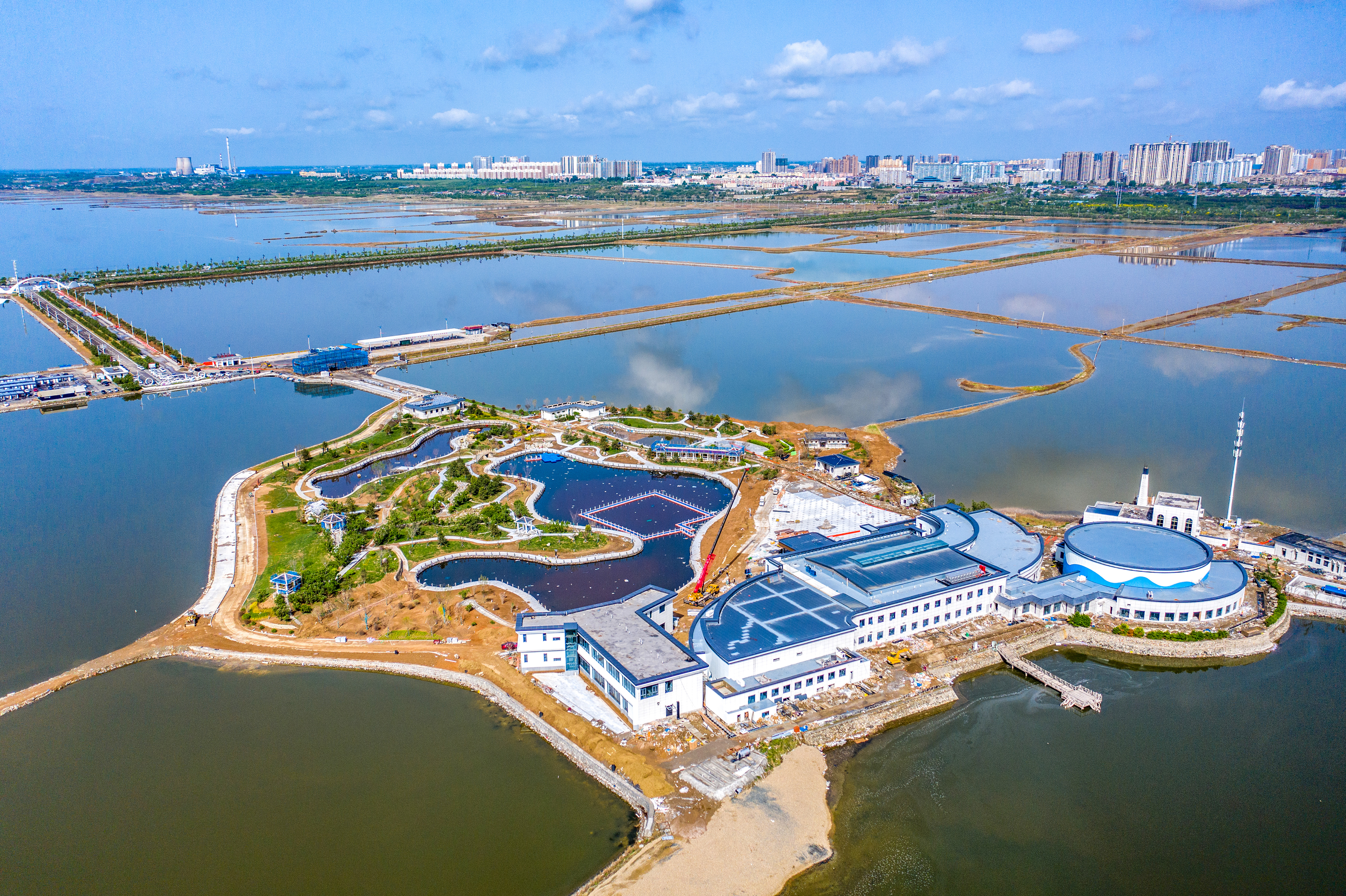 2024年4月30日拍摄的运城盐湖全面提升改造项目现场(无人机照片)。