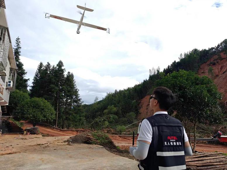 7月29日,道通智能无人机团队在资兴市兴宁镇进行灾情勘察。 新华社发