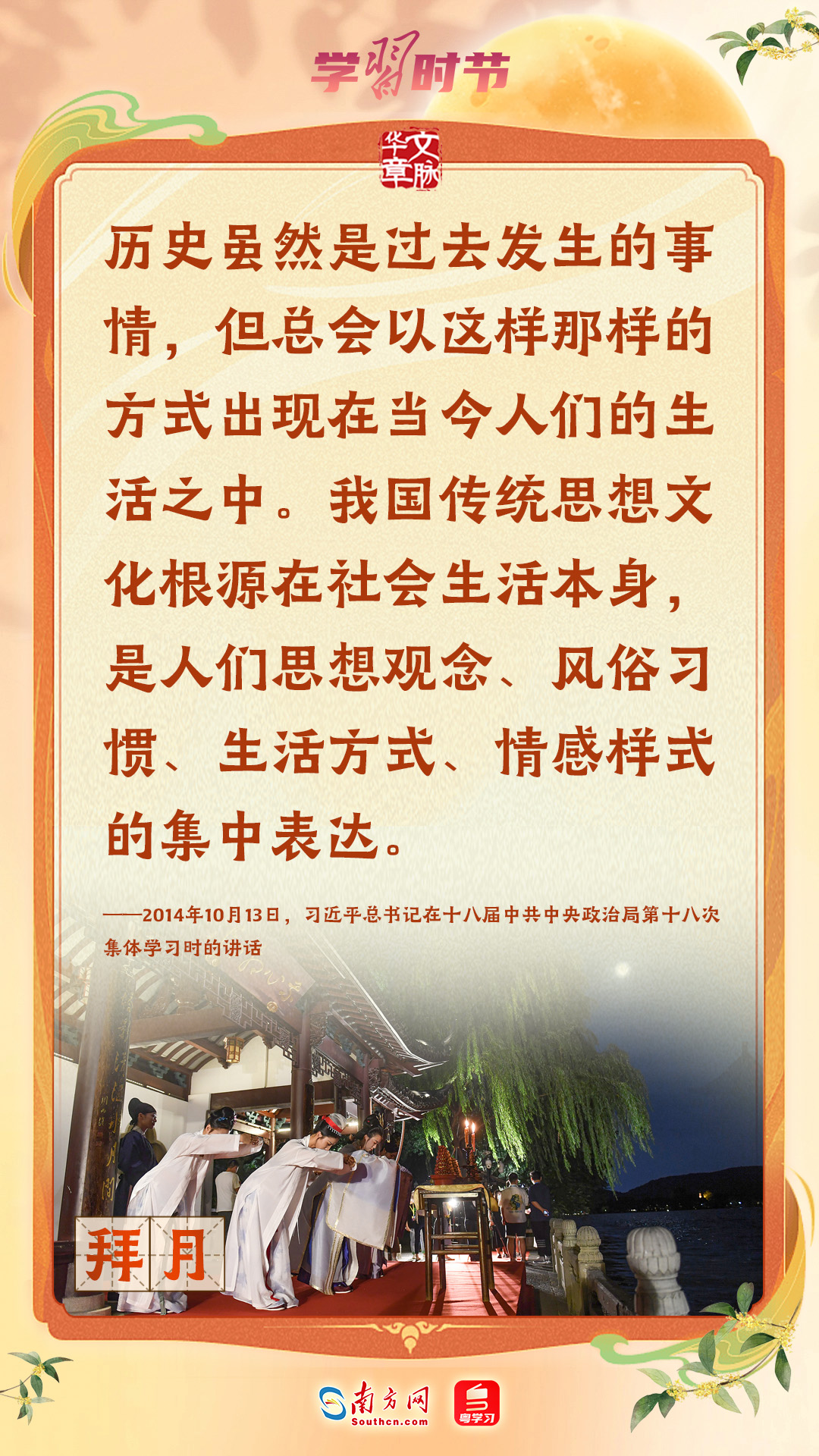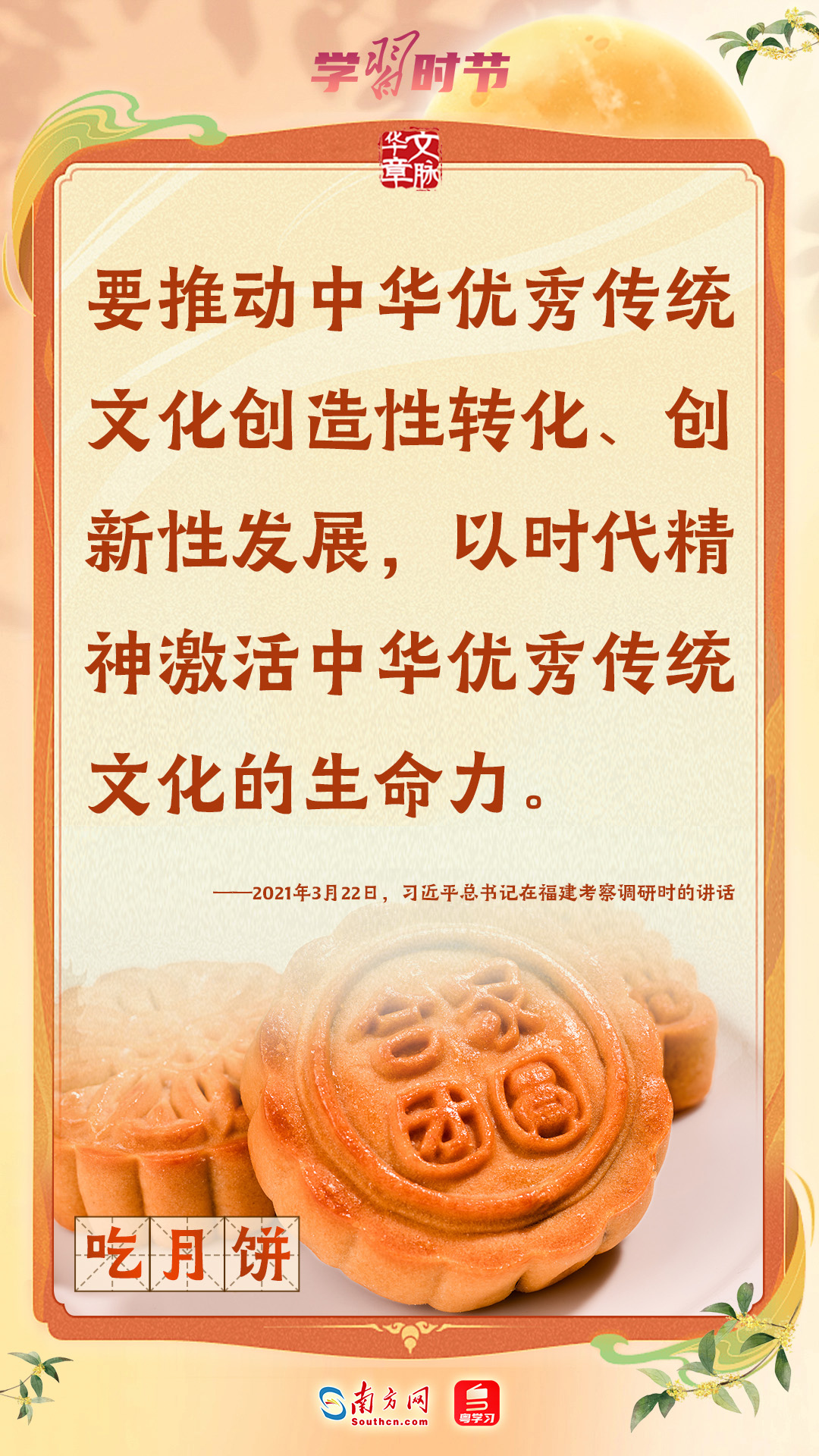 品月饼、赏月拜月、看花灯、饮桂花酒……作为我国重要的传统节日,中秋节蕴含着中华优秀传统文化的精髓。习近平总书记一直以来高度重视传统节日和传统文化,曾多次强调要发挥其宝贵价值和独特作用。